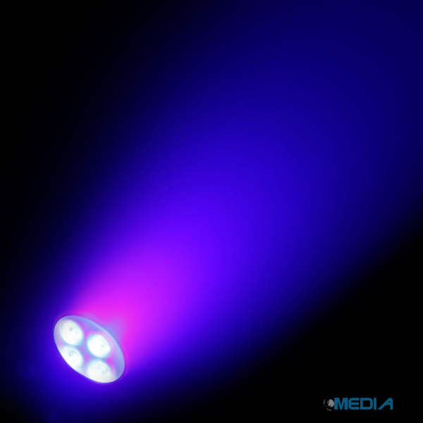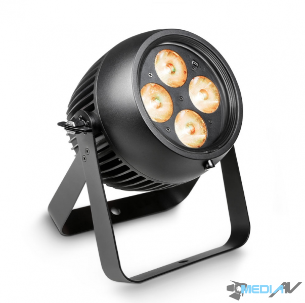 - Profesjonalna lampa PAR o stopniu ochrony IP65, posiadająca 4 diody OSTAR LED 32 W RGBW marki Osram o kącie wiązki światła równym 8°