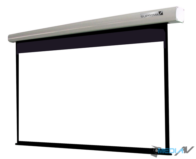 Elektrycznie sterowany ekran projekcyjny klasy Premium stworzony dla wymagającego odbiorcy. Klasyczny design aluminiowej kasety z delikatnymi przetłoczeniami oraz perfekcyjnym wykończeniem. Nowoczesny system montażu i demontażu typu "click-on/off". Materiały projekcyjne amerykańskiej produkcji. Ekran fabrycznie oferowany z czarnymi ramkami podkreślającymi kontrast i ułatwiającymi kalibrację obrazu. Silniki typu "tubular motor" zapewniają szybkie rozwijanie i zwijanie przy jednocześnie cichej pracy. Prestiżu dodaje wytłoczenie nazwy "Suprema" w dolnej części powierzchni projekcyjnej. Sterowanie przewodowe typu "plug -in" w komplecie. Instalacja ekranu nie wymaga specjalisty-elektryka. W opcji dostępne radiowe sterowanie bezprzewodowe.