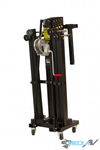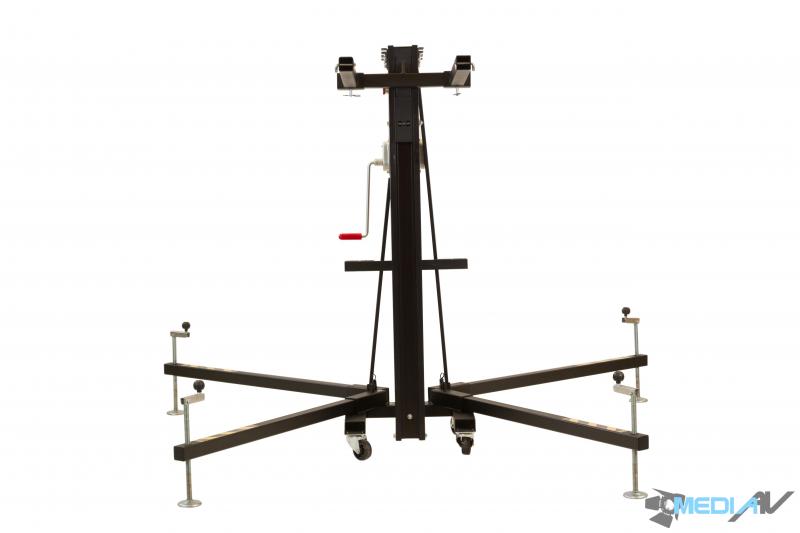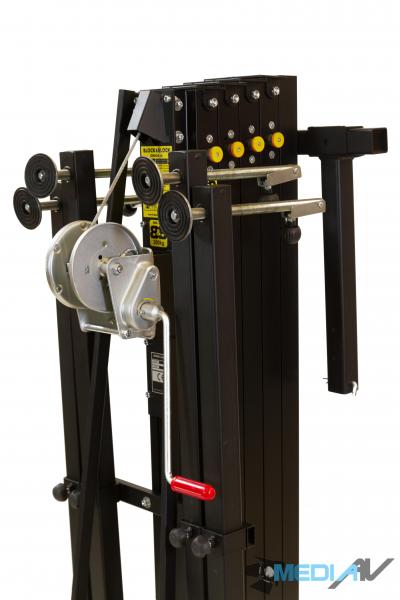 Osiąga maksymalną wysokość 6.25 metrów poprzez ruchome 5 odcinków profili aluminiowych, które zapewniają maksymalne obciążenie 200 kg. Blokady bezpieczeństwa umożliwiają zablokowanie sekcji na różnych wysokościach. Regulowane nogi i wrzeciona zapewniają doskonałą stabilność