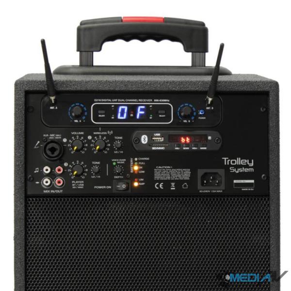Trolley System stanowi kombinację 2-drożnego zestawu głośnikowego oraz wzmacniacza posiadającego dwa kanały wejściowe. Kanały te umożliwiają podłączenie dodatkowego mikrofonu lub źródeł audio z wyjściem liniowym (np. miksera, odtwarzacza audio). Do zasilania urządzenia stosowany jest wewnętrzny akumulator, który jest ładowany za pomocą zintegrowanej ładowarki. Niewielkie wymiary oraz mała waga czynią go bardzo poręcznym, a kompaktowa budowa umożliwia natychmiastową pracę bez zbędnych połączeń i fachowej wiedzy. System może być z powodzeniem stosowany podczas różnego rodzaju imprez, wykładów itp.