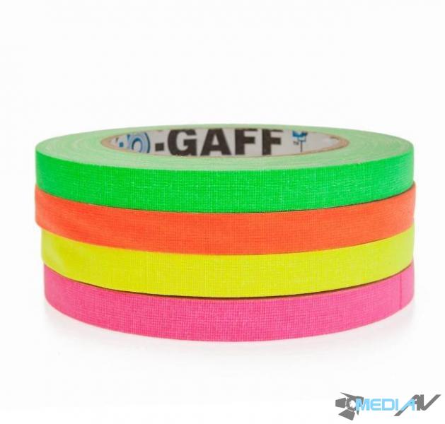 Profesjonalnej jakości taśma GAFFA. Idealna do wszelkich prac na scenie, estradzie, planie filmowym,w studiu telewizyjnym, w teatrze. Ze względu na kolor fluorescencyjny żółty jest niezastąpioną taśmą przy oznaczaniu krańców sceny, schodów, skrzyń transportowych oraz innych przedmiotów które mogą znajdować się na naszej drodze a powinny być dobrze widoczne. Poza tym może służyć do oznaczania specyficznych, ważnych punktów na scenie które będą bardzo dobrze widoczne w czarnym świetle (UV). Taśma ta, ze względu na bardzo dużą wytrzymałość, może być także stosowana do mocowania elementów nagłośnienia, oświetlenia, okablowania, łączenia elementów scenografii, oznaczania miejsc rozstawienia sprzętu, itp.
