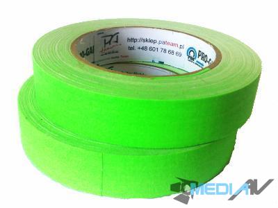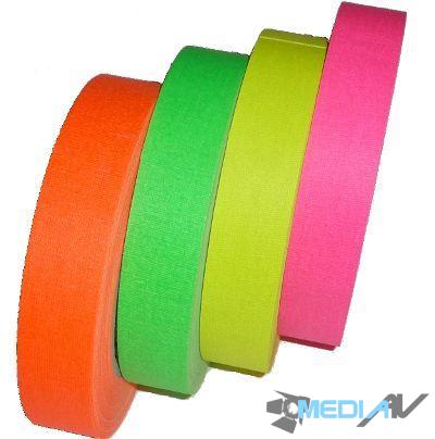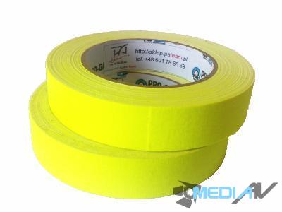 Profesjonalnej jakości taśma GAFFA. Idealna do wszelkich prac na scenie, estradzie, planie filmowym,w studiu telewizyjnym, w teatrze. Ze względu na kolor fluorescencyjny żółty jest niezastąpioną taśmą przy oznaczaniu krańców sceny, schodów, skrzyń transportowych oraz innych przedmiotów które mogą znajdować się na naszej drodze a powinny być dobrze widoczne. Poza tym może służyć do oznaczania specyficznych, ważnych punktów na scenie które będą bardzo dobrze widoczne w czarnym świetle (UV). Taśma ta, ze względu na bardzo dużą wytrzymałość, może być także stosowana do mocowania elementów nagłośnienia, oświetlenia, okablowania, łączenia elementów scenografii, oznaczania miejsc rozstawienia sprzętu, itp.