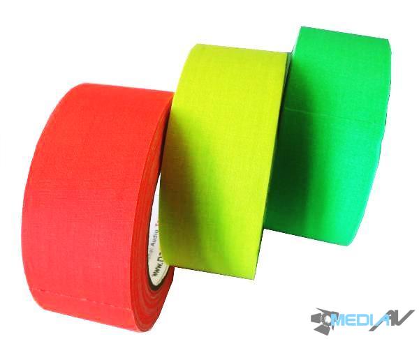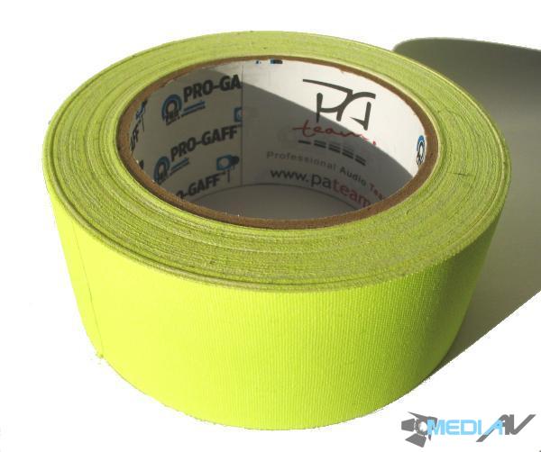 Profesjonalnej jakości taśma GAFFA. Idealna do wszelkich prac na scenie, estradzie, planie filmowym,w studiu telewizyjnym, w teatrze. Ze względu na kolor fluorescencyjny żółty jest niezastąpioną taśmą przy oznaczaniu krańców sceny, schodów, skrzyń transportowych oraz innych przedmiotów które mogą znajdować się na naszej drodze a powinny być dobrze widoczne. Poza tym może służyć do oznaczania specyficznych, ważnych punktów na scenie które będą bardzo dobrze widoczne w czarnym świetle (UV). Taśma ta, ze względu na bardzo dużą wytrzymałość, może być także stosowana do mocowania elementów nagłośnienia, oświetlenia, okablowania, łączenia elementów scenografii, oznaczania miejsc rozstawienia sprzętu, itp.