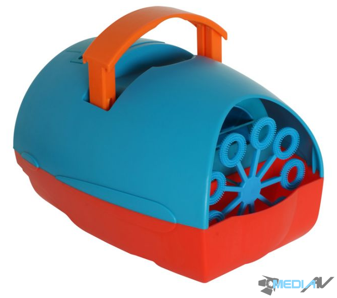 Małe, ale wydajne urządzenie Bubble Machine do produkcji baniek mydlanych. Dzięki zasilaniu bateryjnemu, wytwornica może być używana mobilnie - wszędzie tam, gdzie nie ma zasilania z gniazdka.